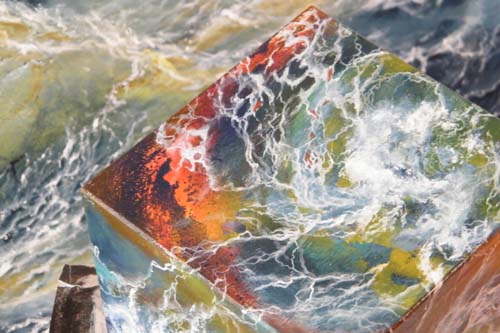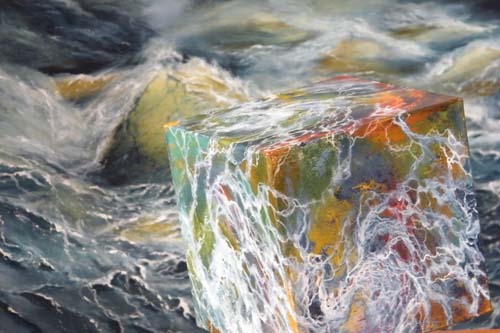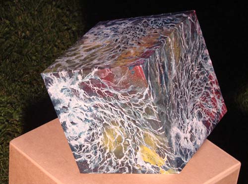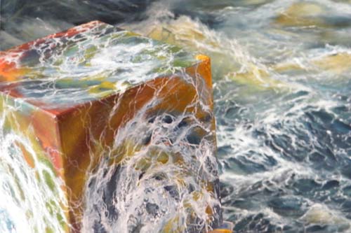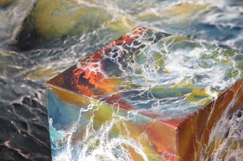Wellenwirbel mit Holzkubus