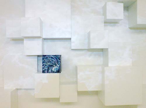 Bemalter Kubus auf kubischer Wand